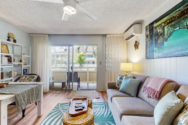 Les chambres climatisées de cet appartement en copropriété incluent une cafetière ou une bouilloire et un sèche-cheveux. Les chambres donnent sur un lanai aménagé. Les chambres ont une cuisine avec un réfrigérateur, une plaque de cuisson, un micro-ondes et une batterie de cuisine, de la vaisselle et des ustensiles.