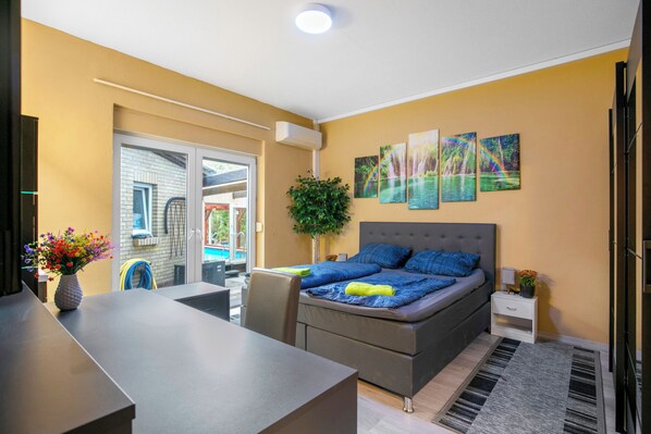 Oasis familiale Damsdorf – Arrivez, ressourcez-vous, respirez ! Notre petit paradis aux portes du Havelland vous accueille, vous et votre famille, avec chaleur. Ici, vivez de vraies vacances familiales : réveillez-vous au chant des oiseaux, profitez de la nature préservée entre lacs, prairies et forêts, détendez-vous au bord de notre étang. Explorez la réserve ornithologique « Rietzer See » à vélo ou amusez-vous avec vos enfants dans la piscine. Aire de jeux, salle de jeux et grande pelouse attendent les jeunes aventuriers, tandis que les adultes savourent le calme et des spécialités régionales à l’auberge voisine. Le monastère de Lehnin et le lac Lehniner sont tout proches. Profitez d’instants de partage, de détente et de bonheur à l’Oasis familiale Damsdorf – sentez-vous comme chez vous !