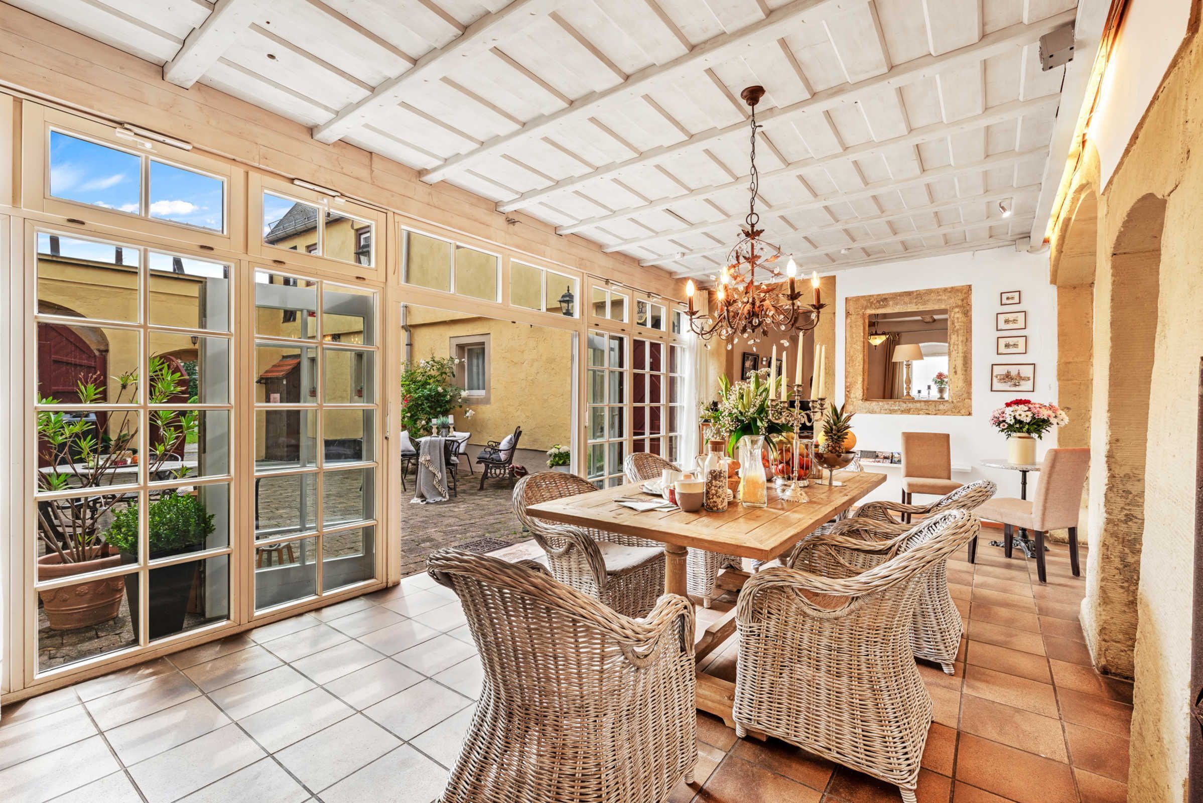 Das Haus Sofie hat eine Terrasse im Innenhof und eine weitere Terrasse im Garten mit gemütlichen Sitzmöbeln.