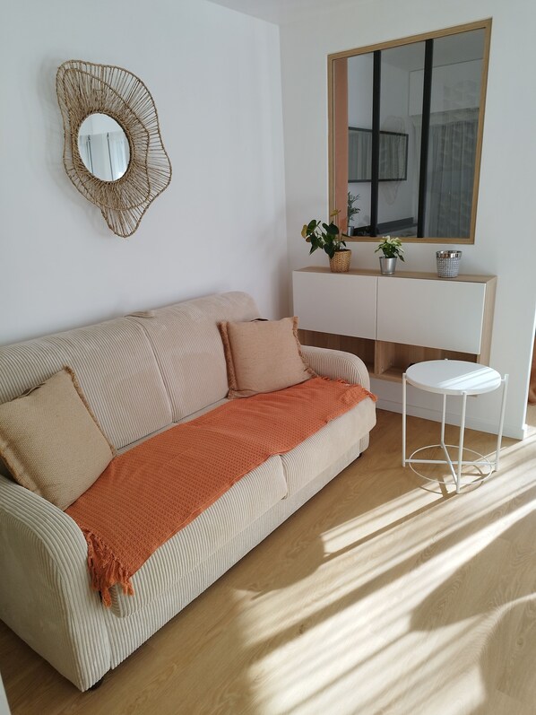 Studio entièrement rénové avec coin nuit séparé par cloison et rideau