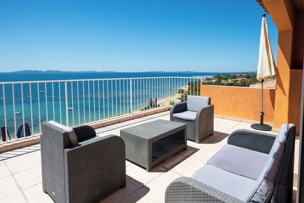 Niché au cœur d’un domaine privé et sécurisé, à deux pas de la plage de l’Argentière, ce bien d’exception offre un confort optimal pour un séjour inoubliable. Dominant la mer avec pour seul vis-à-vis la baie des Îles d’Or, elle dévoile une vue panoramique à couper le souffle.