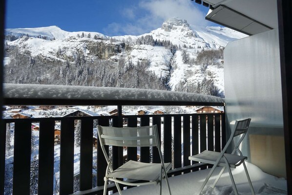 Bon accueil, petit appartement traditionnel de montagne avec une belle terrasse bien exposée et une superbe vue. Situé au pied des pistes, à 200 m du départ du télésiège Le Charmieux.