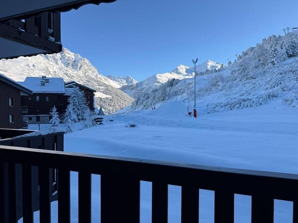 À 20m des pistes de ski, 2ème étage, balcon, parking, télévision, casier à ski, 40m²