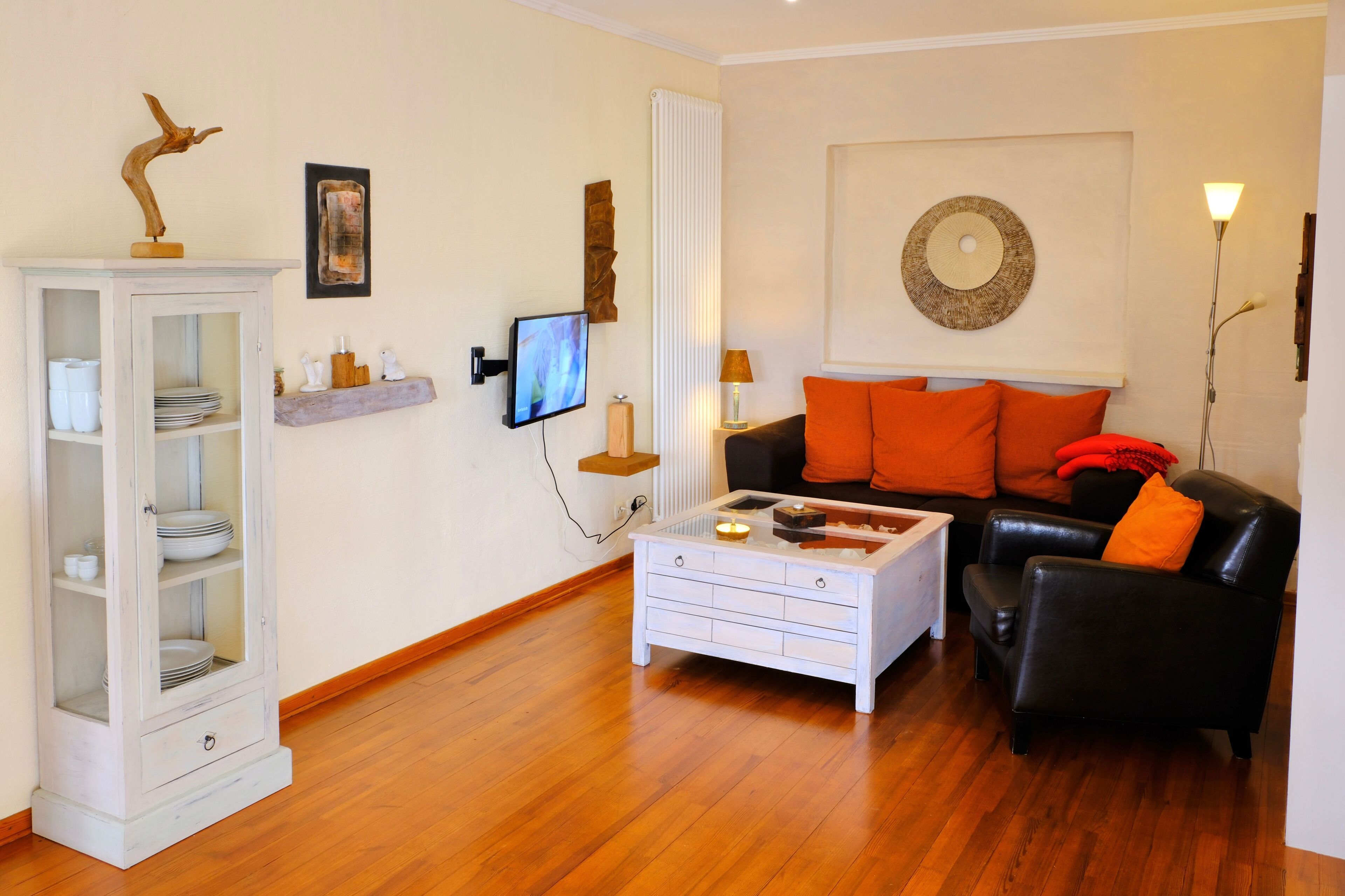 Le Ferienwohnung Feuerstein est situé du côté de l'avenue et convient particulièrement aux clients qui apprécient les formes claires et un ameublement moderne. Des éléments coulissants séparent les pièces individuelles et, en fonction de leur humeur, offrent différentes perspectives au sein de l'appartement. Vous entrez dans ce spacieux appartement de 2 pièces situé dans un hall d’accueil, qu’il partage avec l’appartement Jasmund. Dans une réservation parallèle de l'appartement Jasmund, cet appartement est particulièrement adapté aux familles avec enfants plus âgés, qui devraient avoir une chambre et une salle de bains séparées, ainsi qu'aux couples sympathiques qui aiment prendre le petit déjeuner ou cuisiner ensemble.
