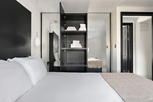 Les chambres de cet appartement incluent un sèche-cheveux et un fer / une planche à repasser. Les chambres ont une cuisine avec un réfrigérateur, un micro-ondes, une batterie de cuisine, de la vaisselle et des ustensiles et un lave-vaisselle. Un service de ménage est fourni sur demande.