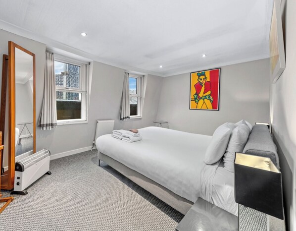 Conçu par un célèbre couturier irlandais avec un confort contemporain 5 étoiles. L'appartement est idéal pour les familles, dispose de 2 grandes chambres doubles et un grand canapé-lit dans le salon. Une chambre avec deux grands singles extra et une chambre super king-size avec une salle de bains luxueuse, et une énorme douche de pluie.