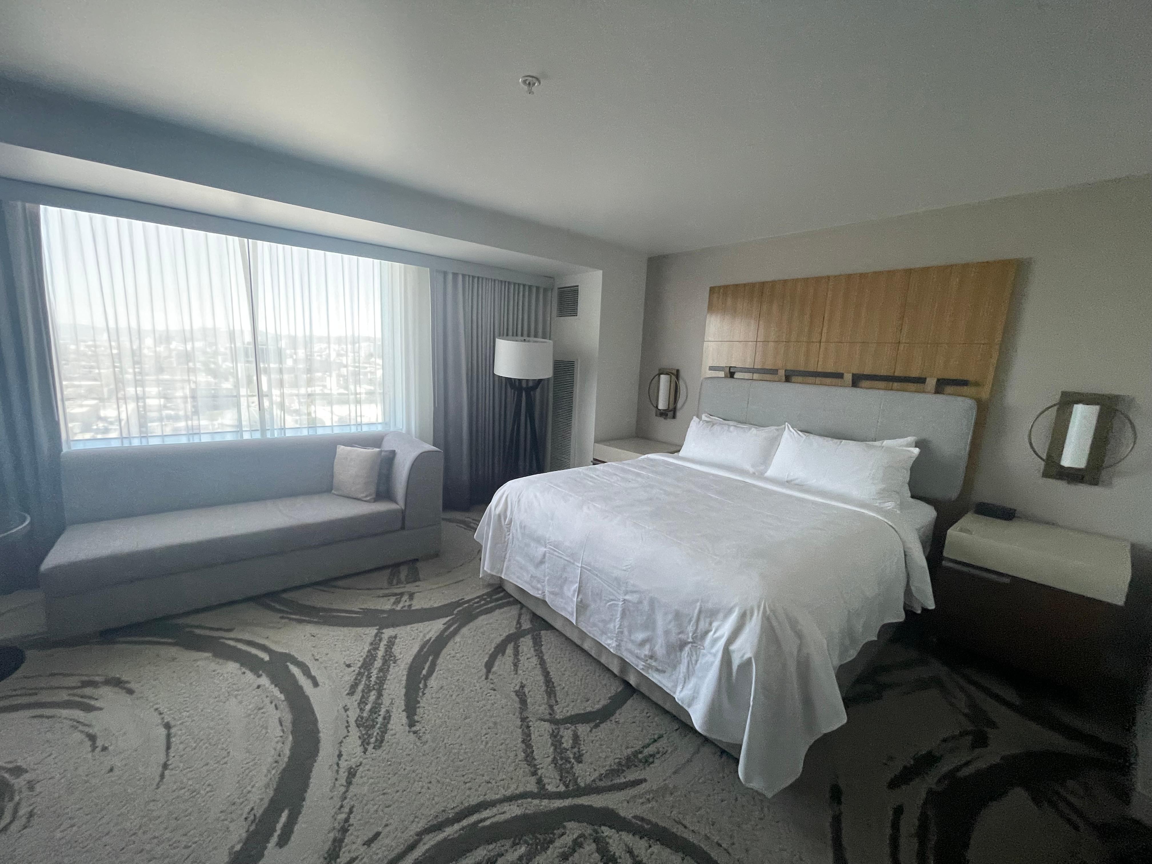 The bed was so comfortable, the whole room was so clean when we first arrived and we had a nice little view. The tv was great quality, it had all the streaming apps. The bathroom was amazing, very spacious, the shower was huge. A robe and towels were provided, among other things. Staff were super nice.