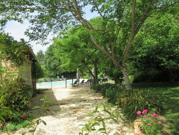 Piscine privative non chauffée, au chlore, ouverte du 1er mai au 15 octobre, dimension 4.50mx9m et profondeur de 1 à 1.50 m, sécurisée par une barrière. Terrain de pétanque.