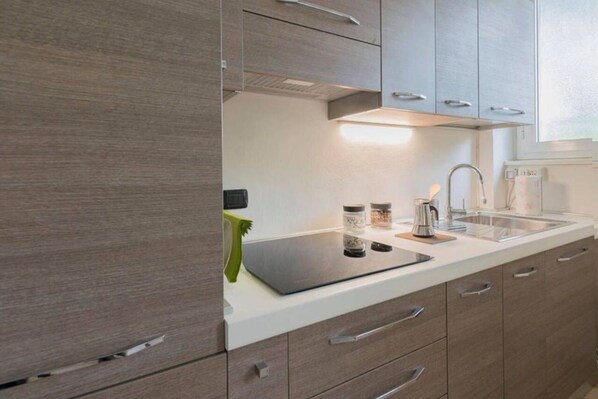 Réfrigérateur, micro-ondes, plaque de cuisson, cafetière/bouilloire