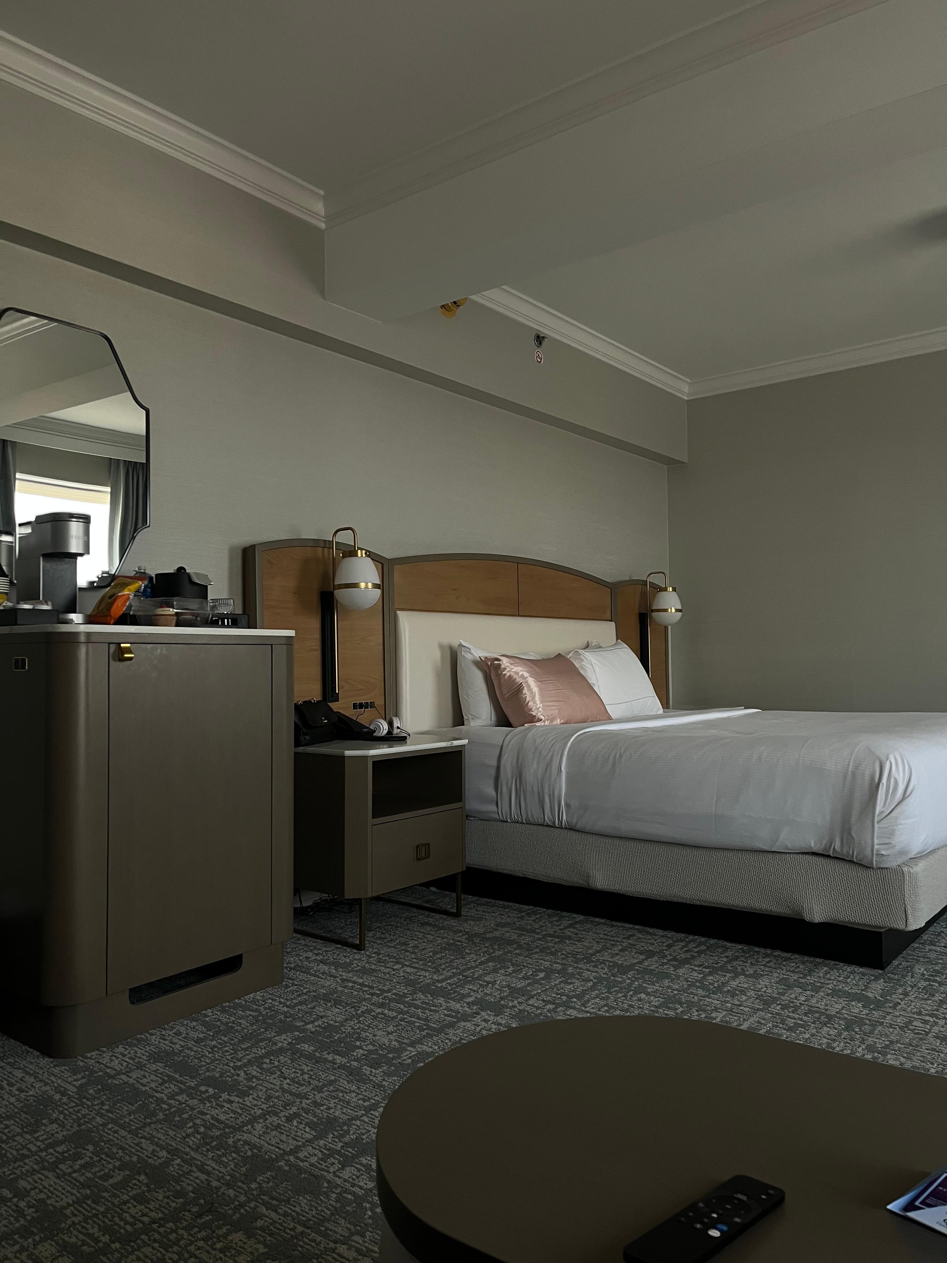 Large clean room, could use more ambient lighting. Bathroom super small for such big room. Staff was tremendous! Love the architecture and the pub downstairs.