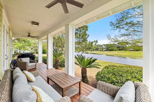 The view from the back porch is a pond and golf course. The morning sun there is so nice!