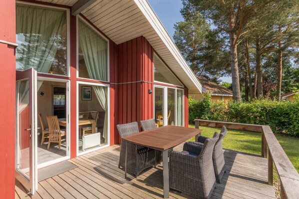 Des sites culturels et naturels exceptionnels vous attendent dans un rayon de 50 kilomètres. Visitez le romantique château de Mirow avec son île de l'amour, explorez le parc national de Müritz avec ses plus de 100 lacs et marais ou faites une excursion au magnifique château de Rheinsberg au bord du lac Grienerick. La ville résidentielle de Neustrelitz impressionne par son jardin historique et sa charmante place du marché, tandis que le château féérique de Klink an der Müritz invite à l'émerveillement. Pour les amoureux de la nature, un détour par la tour d'observation du lac Specker See, avec sa vue spectaculaire sur le paysage lacustre, vaut le détour. Vous pouvez également découvrir la voie navigable Müritz-Havel lors d'une excursion en canoë ou d'une aventure dans les écluses, ou encore emprunter les nombreux sentiers de randonnée et pistes cyclables qui traversent les forêts et longent des lacs scintillants. Les fetes d’étudiants, enterrements de vie de jeune homme /fille ou autre fete de ce type sont interdites dans cette maison Logement non fumeur. ne convient pas aux personnes à mobilité réduite. Composition: Rez-de-chaussée: (cuisine ouverte(foyer(4 foyers, électrique), bouilloire, grille-pain, cafetière/percolateur, four, micro ondes, lave-vaisselle , réfrigérateur(+ congélateur)), salle à manger-salon(TV(satellite), table, cheminée, coin salon), chambre(lit simple, lit simple), chambre(lit double), salle de bains(Bain à bulles, douche, sauna(privé), lavabo, WC), remise) sèche-linge(partagé avec d'autres clients, payant), lave-linge (partagé avec d'autres clients, payant), chauffage(électrique), terrasse, jardin, mobilier de jardin, transats, barbecue(charbon de bois), parking, piscine(partagé avec d'autres clients, payant), chaise haute, baby crib(paid), Serviettes/draps (frais supplémentaires)
