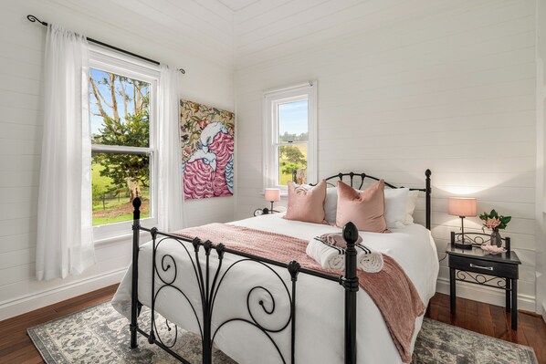 What a beautiful, relaxing property! We loved the quaint, carefully styled house, the view, abundance of birdlife, the fireplace and thoughtful breakfast inclusions.