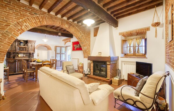 Sur une petite colline dans le Val di Chiana se trouve ce confortable appartement de vacances au rez-de-chaussée d'une villa privée. Vous entrez dans l'appartement par la terrasse privée et vous vous trouvez directement dans la salle de séjour centrale, très accueillante avec ses murs anciens, ses arcs et ses poutres ; le coin cuisine, trois chambres à coucher (dont une avec sortie sur la terrasse) et deux salles de bains lui font suite. L'ameublement est de style rustique toscan, avec une cheminée ouverte. Devant l'appartement s'étend une longue terrasse en briques avec un coin salon et un barbecue. L'appartement dispose également d'un jardin bien entretenu avec une terrasse, une pelouse et des jeux pour les enfants. L'aimable propriétaire habite à l'étage supérieur. La situation est extrêmement favorable pour explorer la Toscane centrale. En un rien de temps, vous atteindrez Arezzo (15 km) : flânez sur le Corso central qui vous mènera jusqu'à la cathédrale de la vieille ville. Il y a au moins trois églises remarquables à Arezzo : la cathédrale elle-même, qui domine toute la ville, la Pieve médiévale et l'église San Francesco. L'apéritif est meilleur sur la piazza qui se trouve devant ; sous les loges de Vasari sur la Piazza Grande, les plaisirs culinaires et visuels se combinent parfaitement. Tous les premiers week-ends du mois, le grand marché national d'antiquités anime toute la vieille ville et, en juin et en septembre, les traditionnels jeux équestres du Saracino se déroulent sur la Piazza Grande. D'autres destinations qui valent la peine d'être visitées : La pittoresque ville étrusque de Cortona (25 km), Monte San Savino (6 km) et Lucignano (10 km) ; Le lac Trasimène (35 km) ou la ville viticole médiévale de Montepulciano (40 km) et bien sûr Sienne (60 km) avec la plus belle place du monde, le "Campo" ! Le centre de la petite localité d'Alberoro avec toutes sortes de magasins, bar, ristorante est également facilement accessible à pied (500 m).
