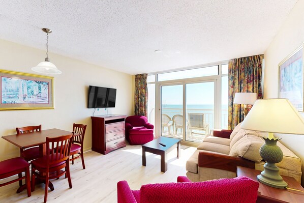 Oceanfront condo with pools, lazy river, hot tubs, sauna, steps from the beach!