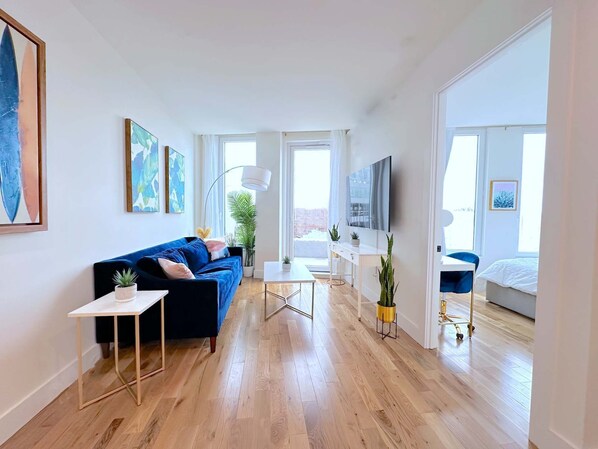 Cet appartement de Brooklyn offre l'accès gratuit à Internet par Wi-Fi. Des espaces bureaux et des bureaux sont fournis.