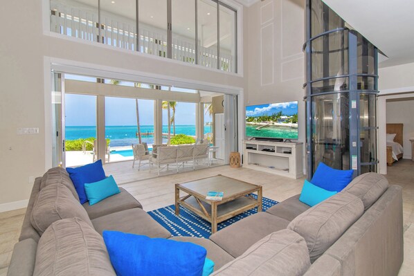 We brought our two grown children, their spouses, and 5 grands to Grand Cayman for our retirement celebration. The main house is very comfortable with large open spaces. Bedrooms comfortable. Cottage was used for all the grandkids (ages 7, 11, 15, 19, 20). Large bunk room for the boys and the king room for the girls. Washer and dryer in this area was a plus. TV used for their Nintendo Switch games- lots of fun. Internet was fast and a good signal everywhere in both the cottage and the main house. We have one family member who is in a wheelchair. The main house the elevator was amazing and worked perfectly. The large shower, shower chair and beach wheelchair also made this vacation enjoyable and easy for our disabled guest. The pool lift worked well and was quite an unexpected blessing. The WC accessible dock was great. The view is so beautiful!! All the kids swam daily. Lots of cool sea life- puffer fish, yellow snapper, starfish, and colorful blue fish. We walked over to Kaibos and ate some meals and had grocery delivery, Charter boat picked us up at our dock and took us to visit Stingrays and the Reef. Perfect!! We loved this place! Hope to return soon!!