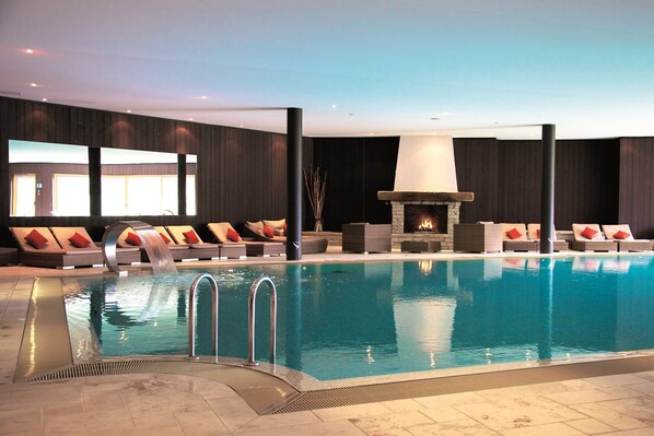 Hébergement au bord des pistes avec une piscine couverte et un bain à remous