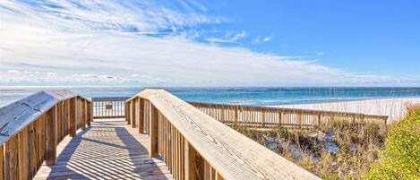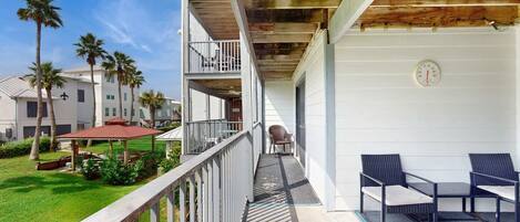 Gulf front condo w/ a private, furnished balcony, shared pools, hot tub, gym
