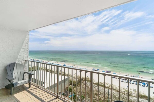 Profiter des vues spectaculaires et dégagées de cette 10e étage condo rénové que vous êtes assis sur le balcon en regardant les vagues frapper la plage de sucre blanc en dessous. Il n'y a rien de plus beau. Avec son nouvel accès à la plage intérieure et facile, cela est vraiment le décor de vos vacances de rêve.