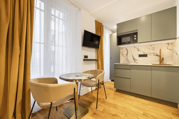 Dieses Apartment bietet Selbstversorgern eine Küche mit einem Kühlschrank, einem Ofen, einer Mikrowelle und einem Geschirrspüler. Genieße den Komfort in vollen Zügen: eine Waschmaschine und einen Wasserkocher mit Kaffee-/Teezubehör findest du ebenso vor wie einen kostenlosen WLAN-Internetzugang und einen Fernseher.