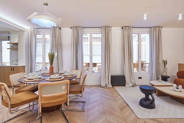 Notre logement climatisé , chic et élégant, calme et moderne, décoré avec gout par un architecte de renom, il offre des équipements haut de gammes qui allient confort et charme parisien.