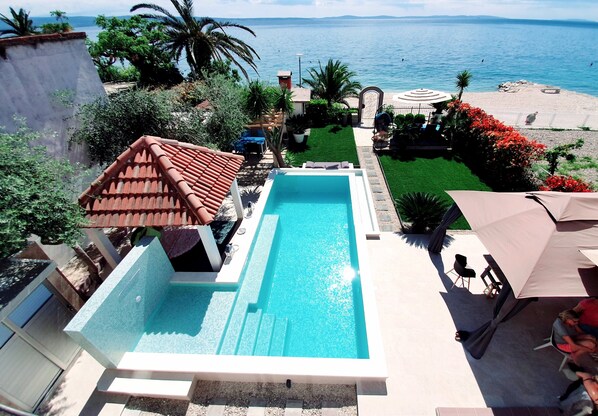 Cette belle Villa Maris en bord de mer est située à Podstrana, juste au sud de Split. C'est une zone de vacances résidentielle et touristique populaire avec de nombreuses plages, hôtels, maisons privées et une nature fantastique entourée par la mer et les montagnes. Il offre un accès direct à l'une des plus belles plages de la région de Split, aussi sablonneuse que possible en Croatie.