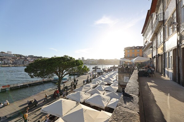 We can NOT wait to come back and we hope to stay in this apartment again. We were actually staying in another rental in Lisbon for the week and decided to train to Porto for a few days. I am soooo glad we did. I did not love that we had to go to the office downstown for the keys. We had troble getting an uber. Then the traffic made the drive longer than the walk. Then the address was confusing and we were dropped far from the apartment. BUT...once we finally found it, we wanted to move in. It is a small l, modest space with a tiny bathroom. But, once you open the french doors to the julliet balcony and breathe in the music, view and porto air, everything is wonderful! You can walk to everything. The bedroom is in the back, protected from the noise. We loved chillin on the couch, watching the boats and hearing the music. Definately walk over the top of the vridge to the lookout point and listen to music up there as well. Definately climb the hill into town. We will be staying longer next time. I will say that, in our experience, the restaurants in town were better than those along the river. Just wander, there is so much to enjoy and doscover and tjis apartment is the perfect home base!