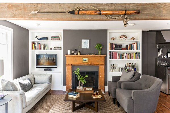 Ne manquez pas ce chalet d'époque élégamment mis à jour dans l'une des plus belles rues de Ptown. Situé sur la charmante rue Cook dans l'East End, juste à côté de la rue commerciale adjacente au quartier des galeries, cette maison de 2 chambres et 2 salles de bain possède toutes les commodités pour rendre votre visite confortable et relaxante. Le salon / salle à manger / cuisine accueillant a de larges planchers en pin, un foyer au gaz, de nombreux sièges et une table à manger pouvant accueillir jusqu'à six personnes. La cuisine du chef entièrement équipée comprend une gamme professionnelle avec grill intérieur, réfrigérateur en acier inoxydable avec machine à glaçons, lave-vaisselle, convection, micro-ondes et plus: A / C, Wifi, TV LCD, système de haut-parleurs compatible Bluetooth.