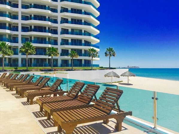 Sur la plage et les pieds dans le sable, cet appartement condo se trouve dans le secteur de Plage de Sandy Beach à 5 km de sites comme : Plage Bonita, Club de golf The Links et Îles et Zones Protégées du Golfe de Californie. Colline de la Compétition et Rodeo Drive Cholla Mall Curios se trouvent également à moins de 5 km de distance.