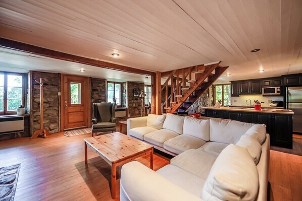 La Maison Renaud peut accueillir 12 personnes. La surface totale de ce chalet de deux étages est de 1850 pi2 (172 m2). Il vous permet de séjourner à quelques minutes des pentes de ski et de vélo du Mont-Sainte-Anne.