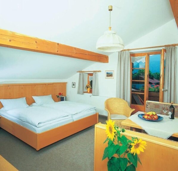 Die Einzimmer-Ferienwohnung mit Wohn-Schlafraum ist ausgestattet mit einem Doppelbett, einer Sitzecke, Südbalkon, Kabel-TV sowie Telefon. Das Bad verfügt über Dusche/WC und Fön. Im Vorraum mit Garderobe befindet sich eine Küchenzeile. Vom Südbalkon aus haben Sie einen herrlichen Bergblick.