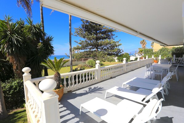 Die Villa in Rincón de la Victoria verfügt über 5 Schlafzimmer und hat eine Kapazität für 10 Person(en). Die geschmackvoll ausgestattet und geräumige Unterkunft verfügt über 300 m² liegt direkt am Strand und verfügt über eine tolle Aussicht auf den Strand / das Meer und den Garten. Die Villa in Rincón de la Victoria verfügt über 5 Schlafzimmer und hat eine Kapazität für 10 Person(en). Die geschmackvoll ausgestattet und geräumige Unterkunft verfügt über 300 m² liegt direkt am Strand und verfügt über eine tolle Aussicht auf den Strand / das Meer und den Garten. Die Unterkunft befindet sich 5 m vom zum Sandstrand entfernt, 2 km vom Golfplatz "Añoreta Golf Club", 8 km vom Golfplatz "El Candado Golf Club", 10 km vom Golfplatz "Baviera Golf Club", 10 km von der Stadt "Málaga", 250 m vom Supermarkt, 30 km vom Flughafen "Aeropuerto Internacional Málaga (AGP)", 20 km vom Bahnhof "Estación Tren Málaga María Zambrano", in einer idealen Umgebung für Familien und am Meer. Die Unterkunft verfügt über einen Garten, Gartenmöbel, ein umzäuntes Grundstück, Terrasse 100 m², einen Grillplatz, einen Kamin, ein Bügeleisen/-brett, einen Zimmersafe, ein Internetanschluss (WLAN), ein Föhn, ein Balkon, ein Kinderbereich, ein Tennisplatz, ein Paddeltennisplatz, ein Paddeltennisplatz, eine Wärmepumpe, eine Klimaanlage im Wohnzimmer und einigen Zimmern, ein Privatpool, einen Parkplatz im Freien (4 Stellplätze) auf dem Grundstück, ein elektronische Mückenschutzgeräte, ein Fernsehgeräte, einen DVD-Player. Die Separate Küche mit Ceranfeld ist ausgestattet in einen Kühlschrank, eine Mikrowelle, ein Backofen, Gefrierschrank, eine Waschmaschine, eine Spülmaschine, Geschirr/Besteck, Kochutensilien, eine Kaffeemaschine, einen Toaster, einen Wasserkocher und eine Saftpresse. Inbegriffene Leistungen: - Pool: Preis: Im Preis inklusive Sonstige Leistungen: - Klimaanlage: Preis: Im Preis inklusive. - Parkplatz im Freien: Preis: Im Preis inklusive. Verfügbare Einheiten: 4. - Kinderbett: Preis: Im Preis inklusive. Verfügbare Einheiten: 2. - Ankunft außerhalb der angegebenen Zeiten: Preis: 40 € per booking. - Hochstuhl: Preis: Im Preis inklusive. Verfügbare Einheiten: 2.