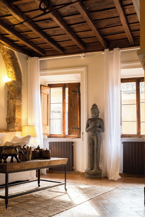 Dans le quartier de Centre-ville de Rome, cet immeuble se trouve à moins de 5 minutes de marche de Via dei Coronari et Place Navone.Panthéon et Château Saint-Ange se trouvent également à moins de 10 minutes de là. Station de tram Arenula-Cairoli est à 11 minutes à pied et Station de tramway Arenula-Min. G. Giustizia est à 13 minutes.