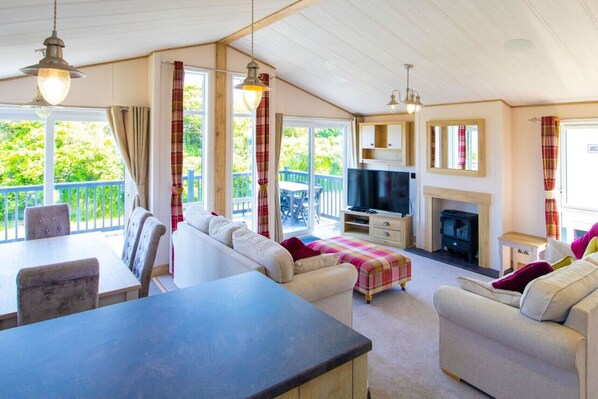 We had a wonderful stay here for just 3 nights and wish we could have stayed longer!The Lodge was exactly as listed and set right back away from the entertainment so not noisy at all, in fact very peaceful and lovely views.Beautifully clean with everything we needed for our stay. And the owner couldn’t have been more helpful when we contacted to say that the airer was broken and there was no ironing board.. messaged back swiftly and got straight over with new ones! Beds were comfy and sofas great too.Will book again when not holidaying with our little dog, although he would have loved it here too.Book up, you won’t regret it!