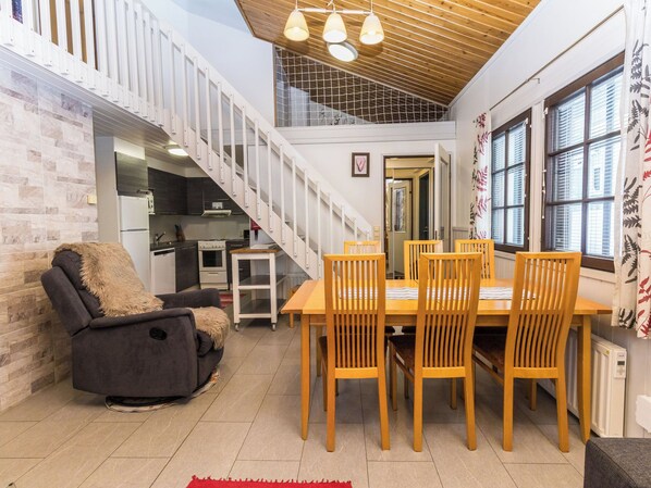 Children can enjoy their own space in the loft, which has its own corner. At the end of the day you can enjoy a warm bath in the sauna. The apartment has a separate toilet from the washroom.