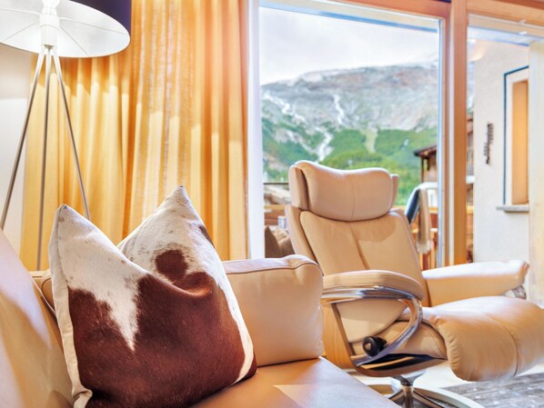 Probablement l'un des meilleurs emplacements de Saas Fee! Dominic A (Ski in, ski out) est un appartement moderne en duplex de 3 chambres situé sur une petite colline à côté du centre du village juste en face des pistes. Mettez votre ski le matin et dévalez les pistes avant même l'ouverture. Le soir, retourner jusqu'à l'appartment ski aux pieds. Cet appartement en duplex comprend deux chambres doubles (dont une suite), 1 chambre avec lits superposés, douche/WC, salle de bain/WC, grand salon avec cheminée et balcon avec une vue panoramique imprenable. La cuisine séparée est entièrement équipée et dispose d'une table à manger ainsi que d'un accès direct au balcon. Il y a un sauna et un bain à remous dans le bâtiment accessible à tous les clients. Le local à skis est situé au rez-de-chaussée. Wifi gratuit.