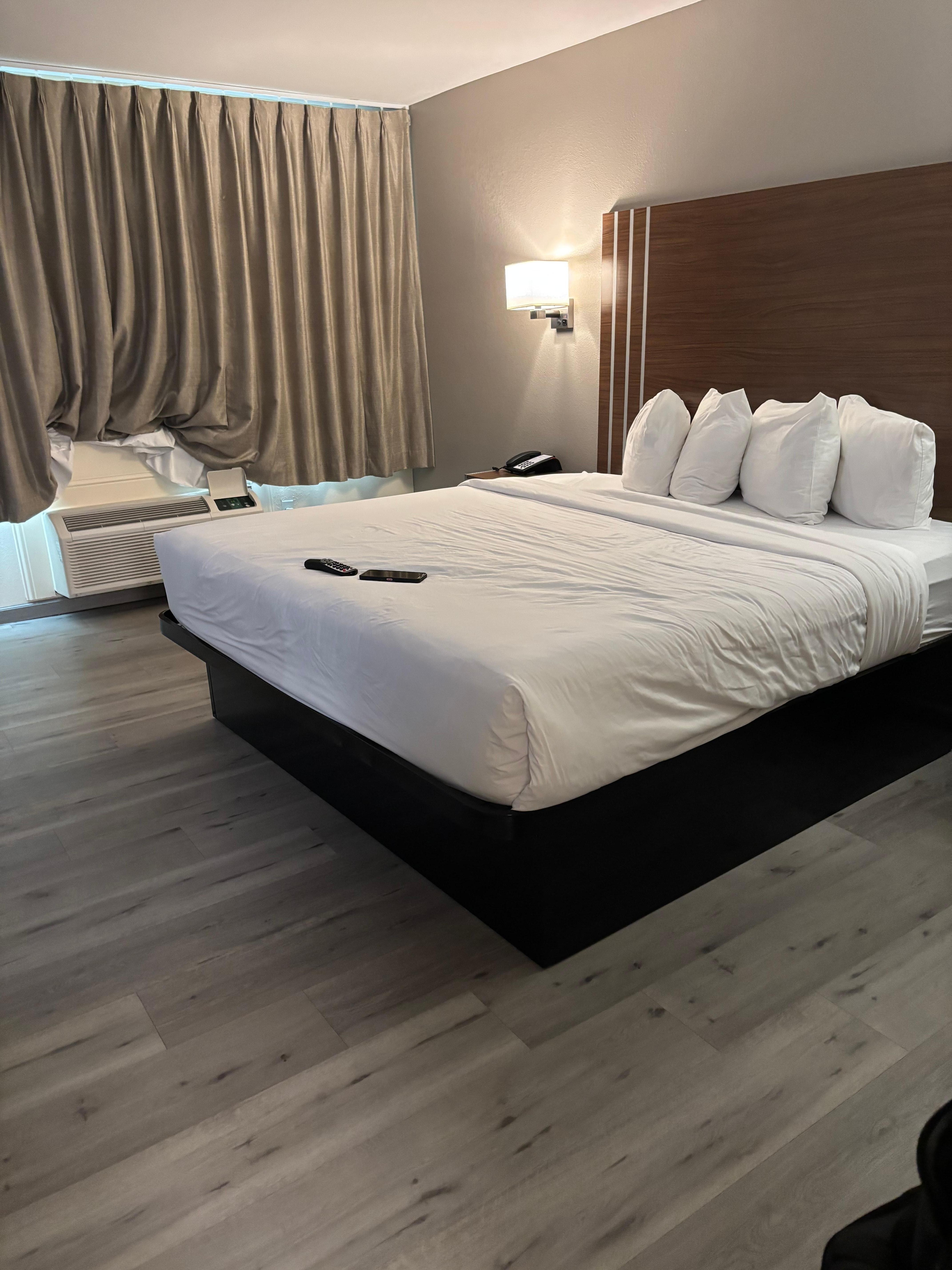 Room was spacious and clean. The clerk was very friendly and allowed us an early check in and first floor because I was bringing my wife back from surgery. Is located near most things you would need like restaurant, grocery and fuel