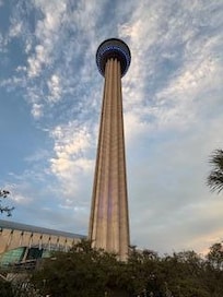 This is a great place for singles/couples to stay. Located across the road from the Tower of Americas, it was easy to walk to The River Walk and its many shops/restaurants. The Alamodome and conference center are nearby too. The apartment was clean and furnished nicely and communication with the host was easy. We arrived late evening when it was dark so had some difficulty finding the right building but called the host and was helped immediately. The pictures of the apartment and furnishings are accurate. There is a secured parking lot and street parking available next to the building. We did not use the pool or fitness room but saw that it was clean and well maintained. My husband and I enjoyed our week-long stay!