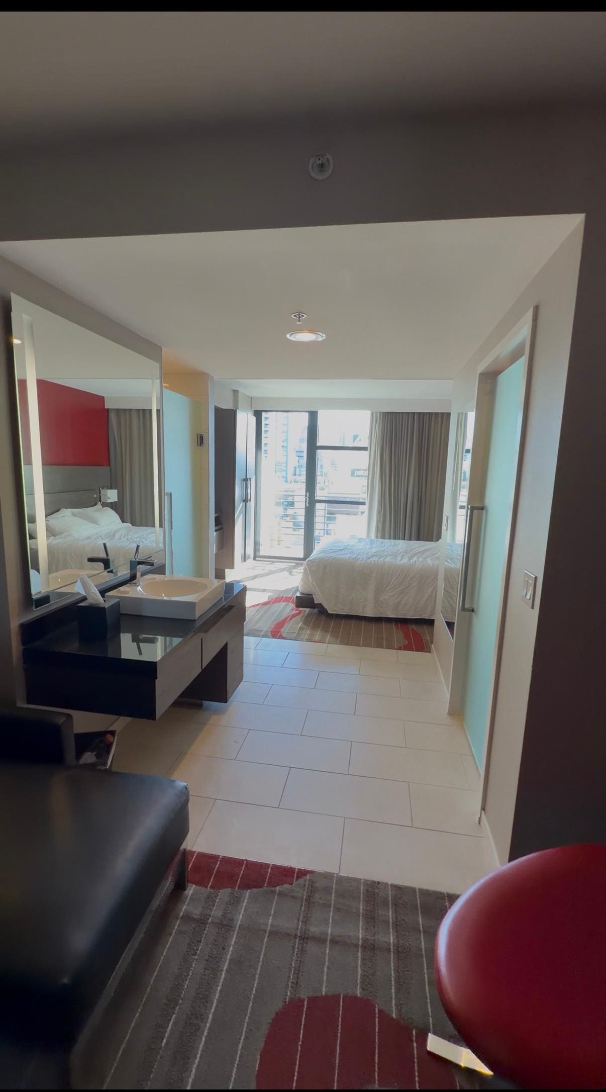 We stayed for 2 nights (Fri-Sun). We stayed in the King Suite. The room was very clean, bathroom area was very clean, but not enough room in fridge for guests personal items storage, no microwave, but it wasn’t needed. The staff was very kind. The pool area was clean, as was the pool. Only suggestion would be to maybe have a bar open by the pool area? So guests can order food or drinks. That would’ve been very nice. This hotel is within close vicinity of EVERYTHING. Loved this stay. 10/10.