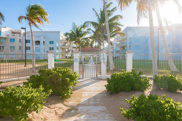 La chambre offre une vue magnifique sur la plage, l'océan et les terrains de la communauté. Il a un lit queen, un grand placard et une salle de bain complète dédiée. Vous adorerez vous réveiller à la vue sur la plage depuis votre lit confortable.