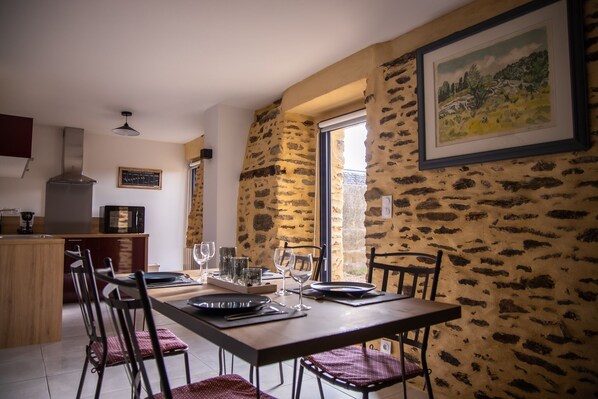 - Une cuisine équipée avec notamment : bouilloire électrique, four, grille-pain, lave-vaisselle, machine Nespresso, plaques de cuisson...
