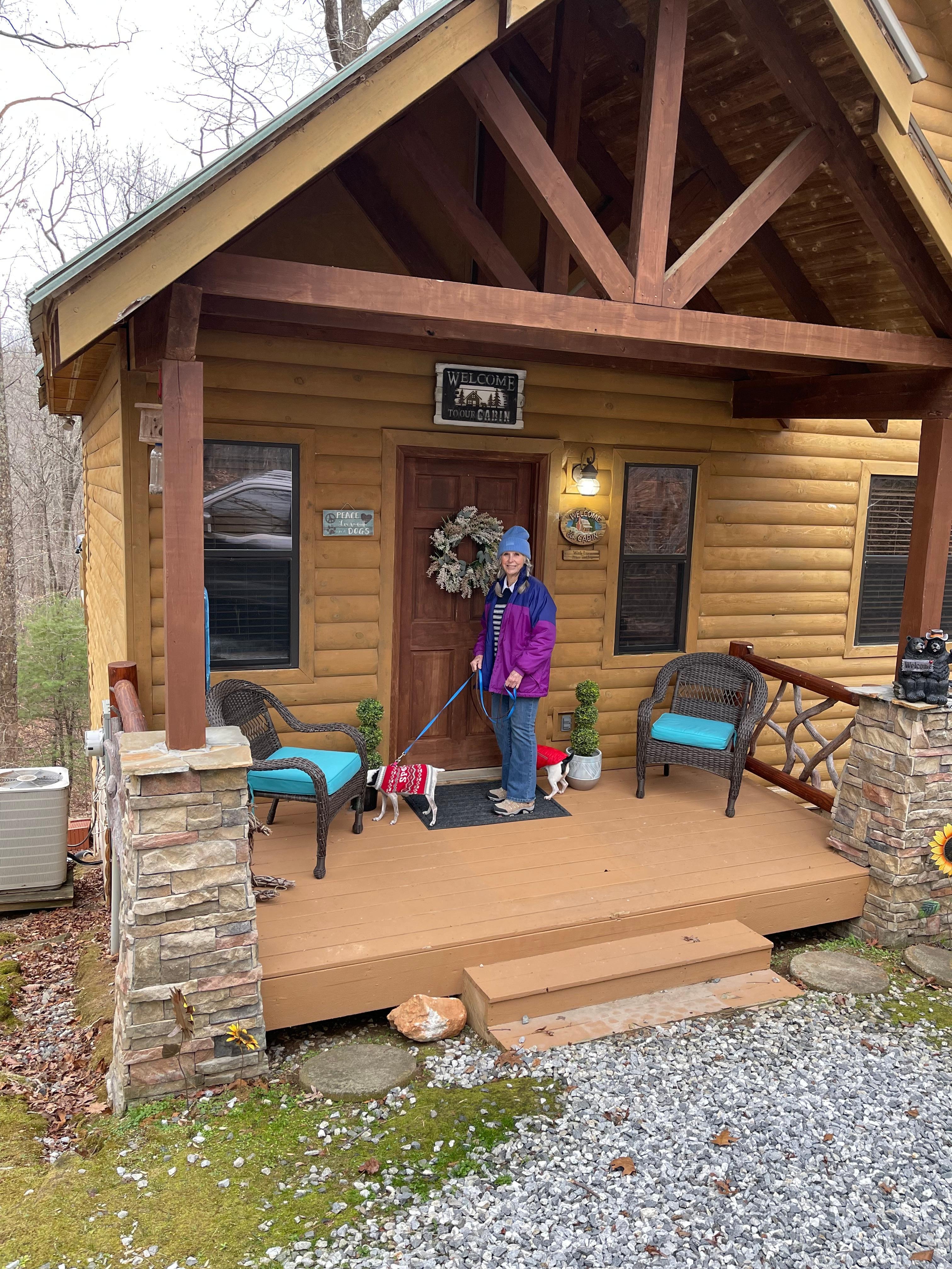 Sur la façade de votre cabine se trouve un porche, où vous ferez l'expérience du foyer, des chaises environnantes et de la forêt. Vous trouverez des bâtonnets à rôtir Marshmellow suspendus au mur du pont, à côté de la porte de la cuisine.