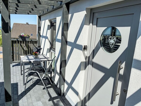 Apt 2 pièces 44 m2, au rez-de-chaussée. Aménagement moderne et plaisant: séjour/salle à manger avec TV (satellite) (écran plat), radio. 1 chambre avec 1 grand-lit et TV (satellite) (écran plat). Coin cuisine (four, lave-vaisselle, 4 plaques vitrocéramiques, grille-pain, bouilloire électrique, micro-ondes, congélateur, cafetière électrique). Douche/WC. Chauffage par le sol. Terrasse 22 m2. Meubles de terrasse, barbecue électrique (portable), chaises longues (2), réduit. Belle vue panoramique. A disposition: lave-linge, sèche-linge, chaise haute pour enfant, lit bébé, sèche-cheveux. Internet (Connexion WIFI, gratuit). Veuillez noter: logement non-fumeur. Détecteur de fumée, extincteur.
