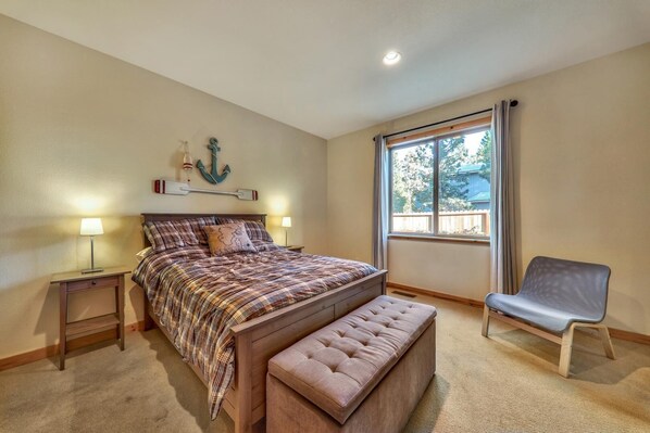 Das erste Schlafzimmer ist ein Queen-Bett und hat nautische Thema Dekor.