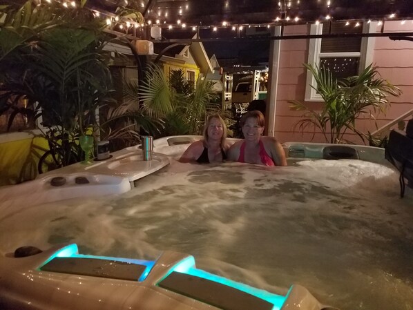 BAIGNOIRE PRIVÉ DANS UNE MAISON DE STYLE BALI CLÔTURELLE DISPONIBLE: Cette maison offre, moyennant des frais supplémentaires de 250 $ par séjour, une maison privée fermée de style balinais 10 x 10 avec un super spa 2019. pour 5 personnes. Profitez d'un fantastique bain à remous privé à tout moment de la journée jusqu'à minuit, juste pour votre famille. Égoutté après chaque invité. Doit être réservé au moment de la réservation.