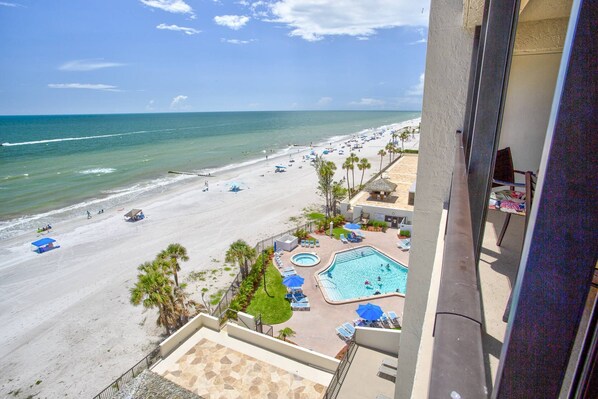 Beachfront Luxury, Amazing Sunsets, Pool, Hot Tub, Beach, Private Balcony, Walkable to Restaurants