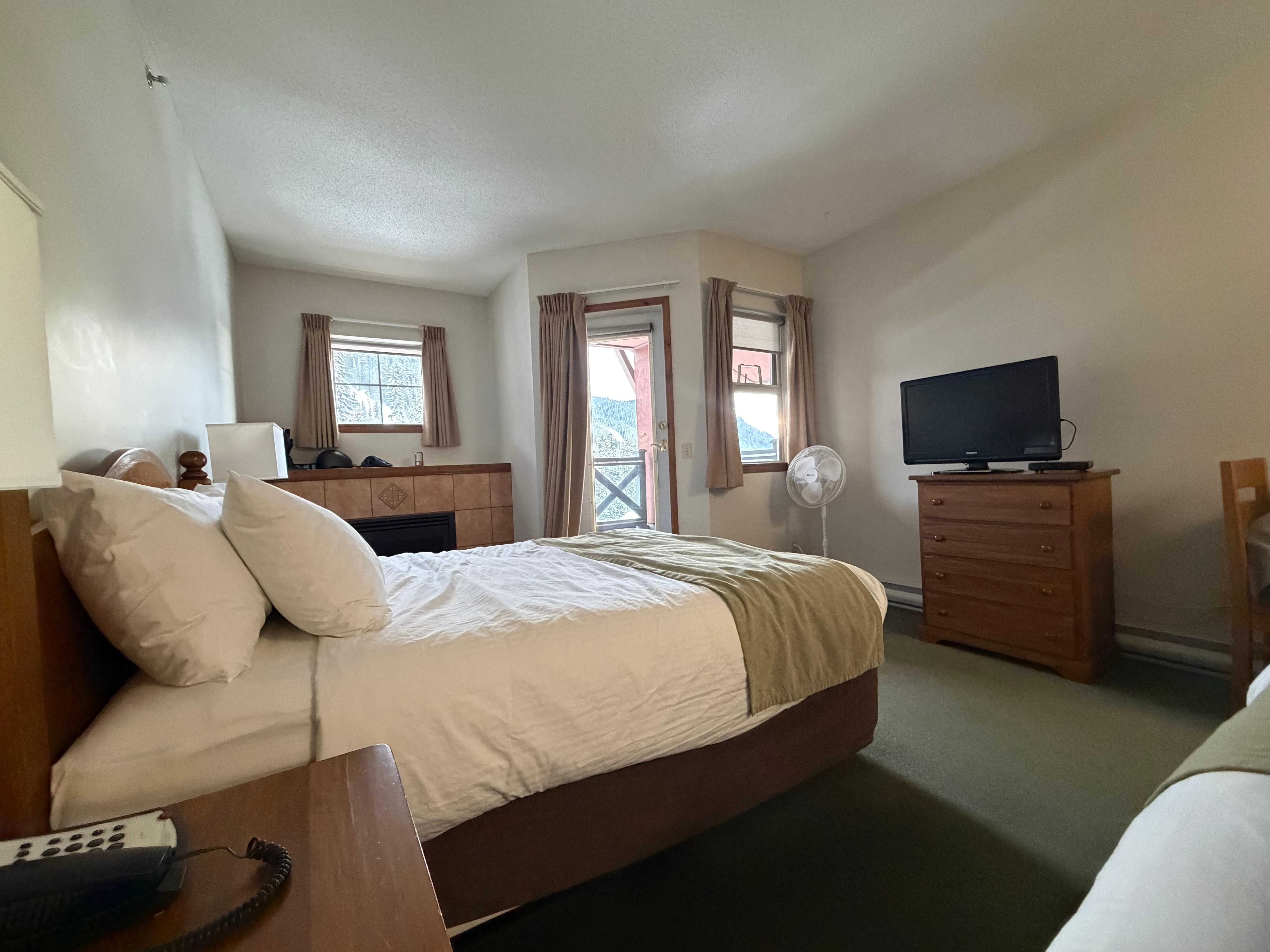 Has to be the absolute best location in Sun Peaks. Whilst the property is older approx 25yrs, it provides everything you need, with Bottoms bar & restaurant below and coffee and food options on the ground floor. The staff are excellent and very helpful. The kitchen in the 1 bedroom apartments making it very easy to stay in cook meals and save on your money as well.