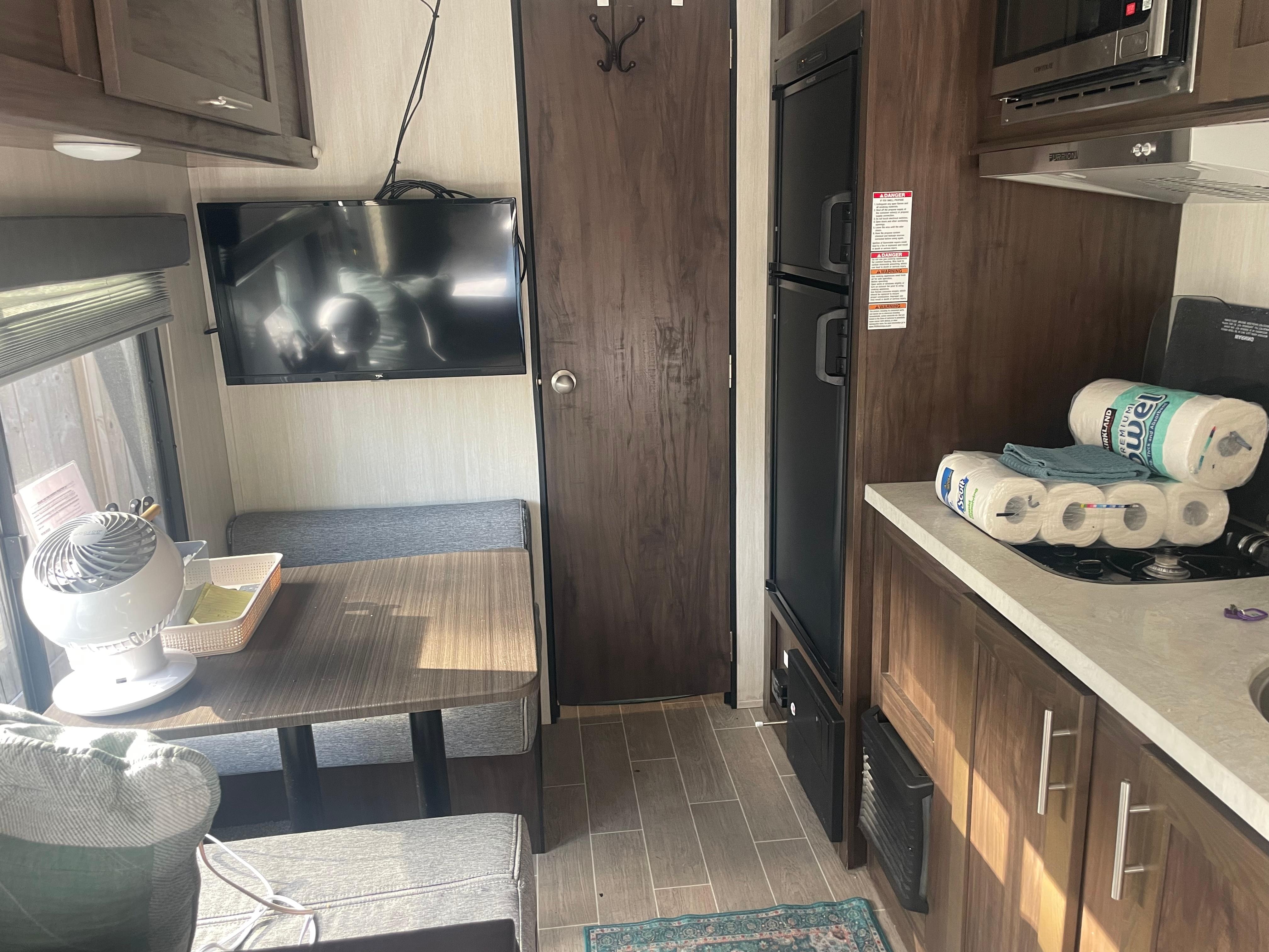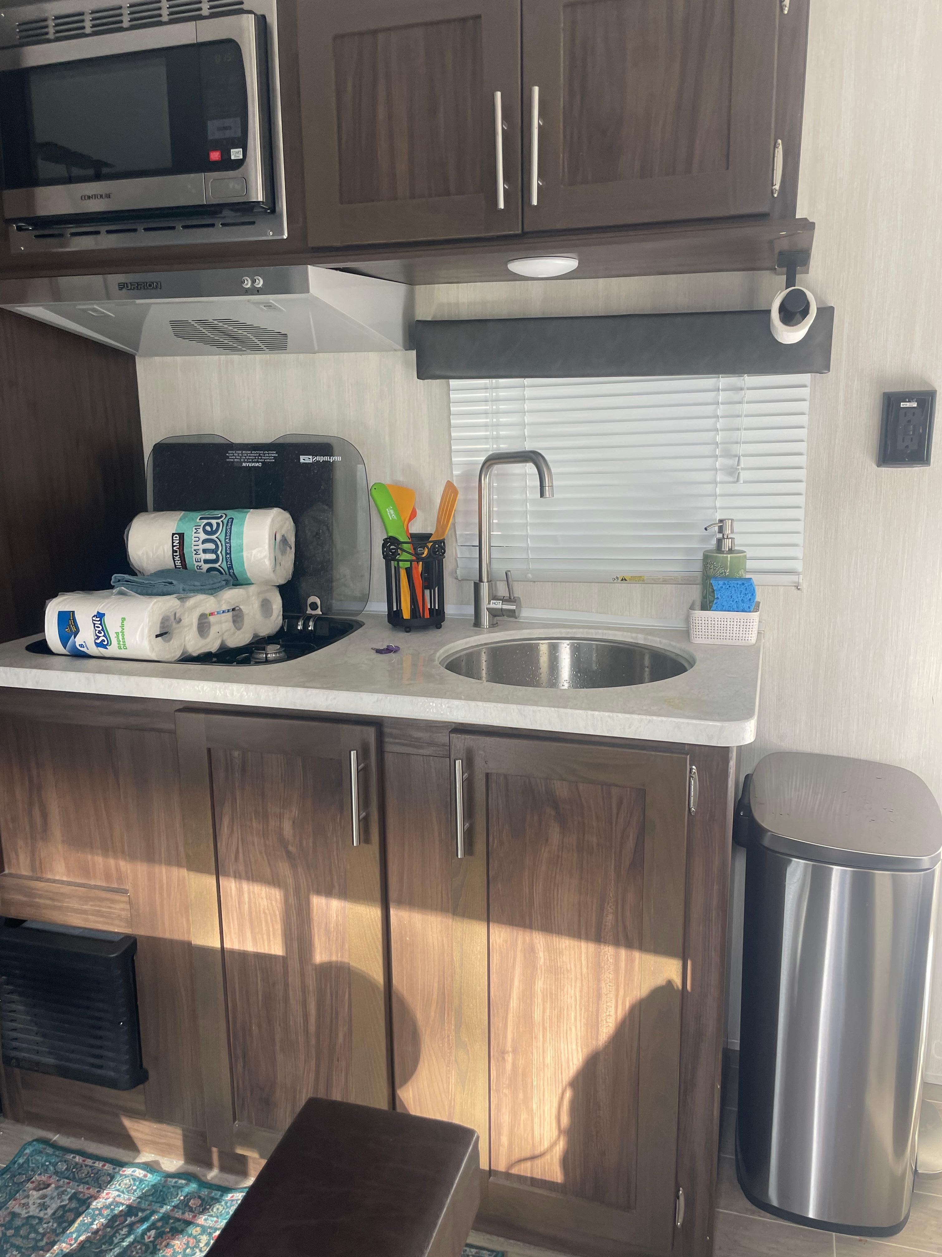 My son was visiting UTampa for the weekend and this little camper was the perfect, cost effective, close to campus option for us! The owner was very accommodating. The camper was just as pictured, very tidy and clean. It is located in a safe residential area, there is plenty of privacy and a dedicated parking spot for your vehicle. We only used it to sleep in at night and did not cook in the camper. There is a small burner, microwave, fridge, cooking supplies, wine glasses, plates in the cabinets. There is a small bathroom, the water tank is small so, we took quick showers! We spent our days outside enjoying all the sunshine and beaches and were provide beach chairs and towels for the weekend. Great little rental, no frills but perfect for a quick getaway!