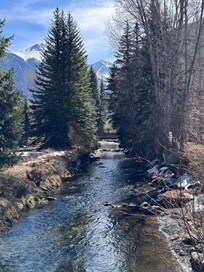 Very spacious and perfectly located condo. Right by the river, walking distance to anywhere in town, and nearby hiking trail and Gondola. The balcony was extra nice - peaceful and beautiful view. Quiet, clean, and had everything we needed! I only wish the listing had mentioned that even though it's on the "ground level", you still had to descend multiple flights of stairs to get to the door.